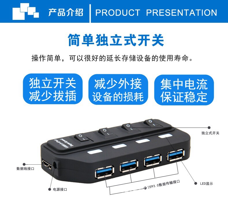 USB3.0HUB,高速数据传输,向下兼容USB 1.1/2.0