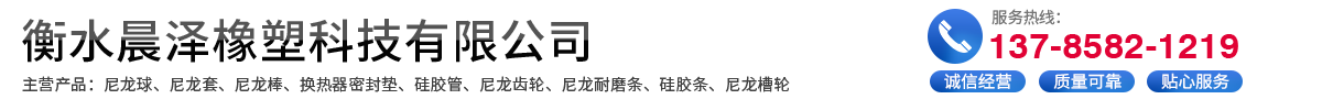 衡水晨泽橡塑科技有限公司是生产、研发、销售工程塑料制品,橡胶制品等系列产品的厂家,现有生产加工设备注塑机、挤出机、数控加工中心,数控车床、铣床、平板硫化机,缩管机等设备。可根据图纸或样品加工各种尼龙齿轮、尼龙板、尼龙棒、尼龙耐磨条,尼龙套、尼龙管、注塑件、MC尼龙件、塑料链板、塑料链网板式换热器密封垫、橡胶密封垫,密封条,密封圈,食品胶管,耐油耐温胶管,不锈钢金属软管,聚氨酯制品等各种异型件,并得到广大用户一致赞誉,产品销往二十多个省市自治区。产品广泛用于食品、化工、冶金、机械制造、电力、煤炭、船舶、造纸、纺织等行业。公司有着完善的加工、检测设备,高素质的设计、生产、销售团队,受广大用户的信赖,公司秉承“质量为上,用户至上”经营理念,为现供需共赢努力奋斗。
