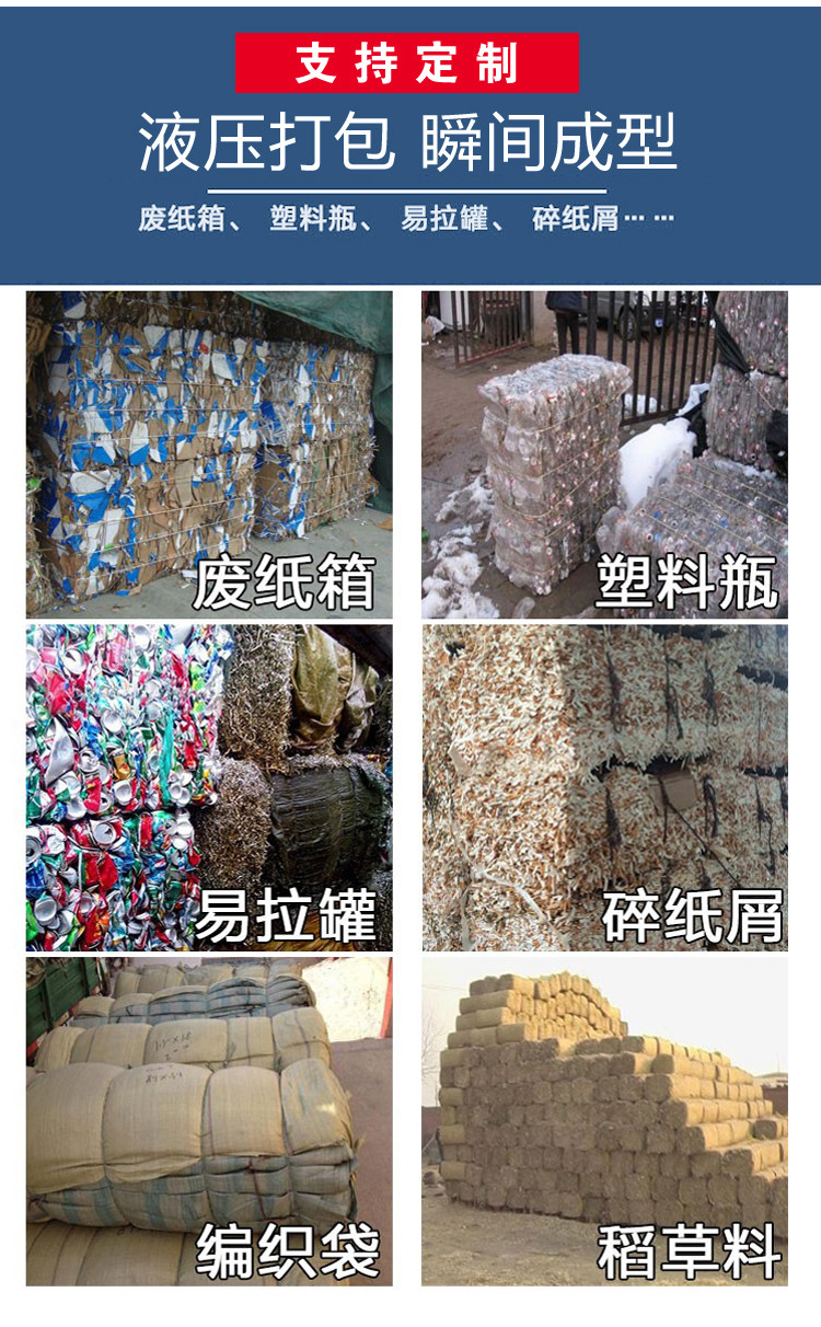 废纸打包机广泛应用于各类废纸厂、旧物回收公司等企业,适用于对旧物废纸、塑料秸秆等的打包回收,能提高劳动效率、减少劳动强度、节约人力等。