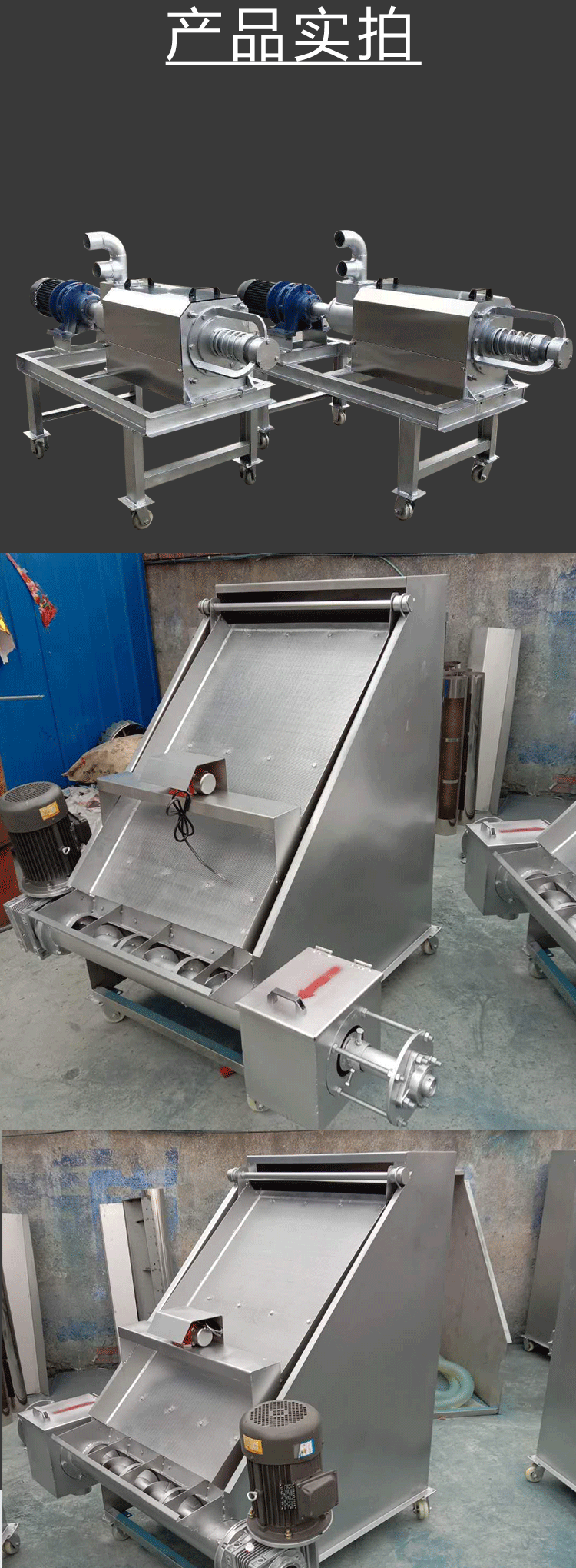 固液分离机又称挤压式干湿分离机,该机广泛应用于鸡、鸭等禽类和猪、牛、羊等畜类粪便,以及酒糟、药渣、淀粉渣、酱渣、屠宰厂等高浓度有机污水的渣液分离。