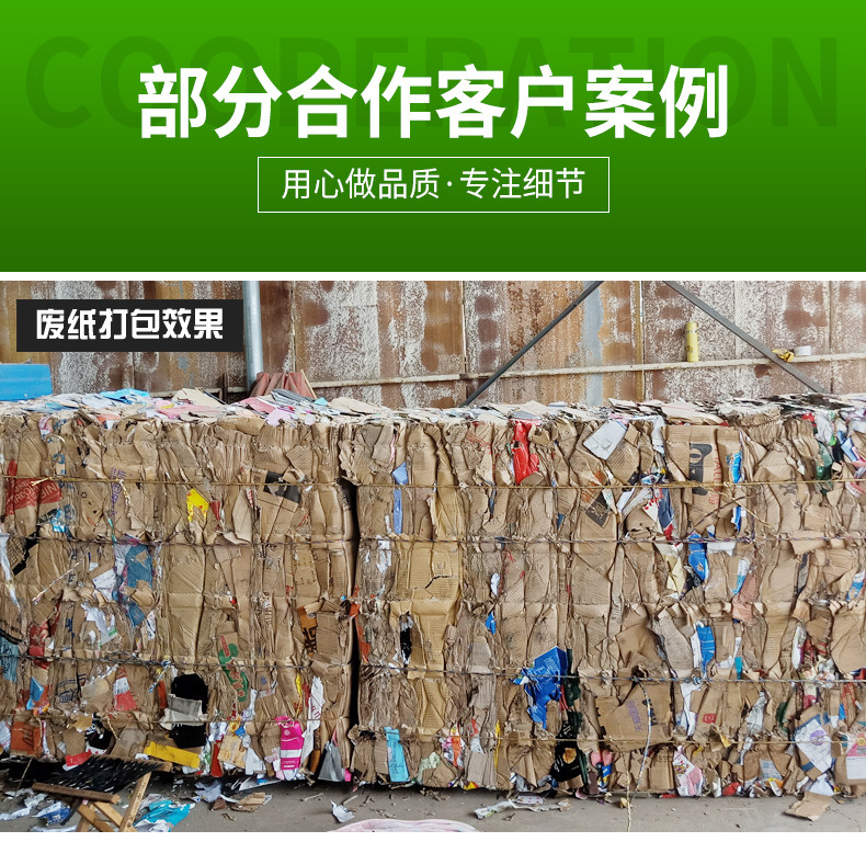 1、本机适用于:废纸箱、报纸、塑料等松散物的物理压缩打包。