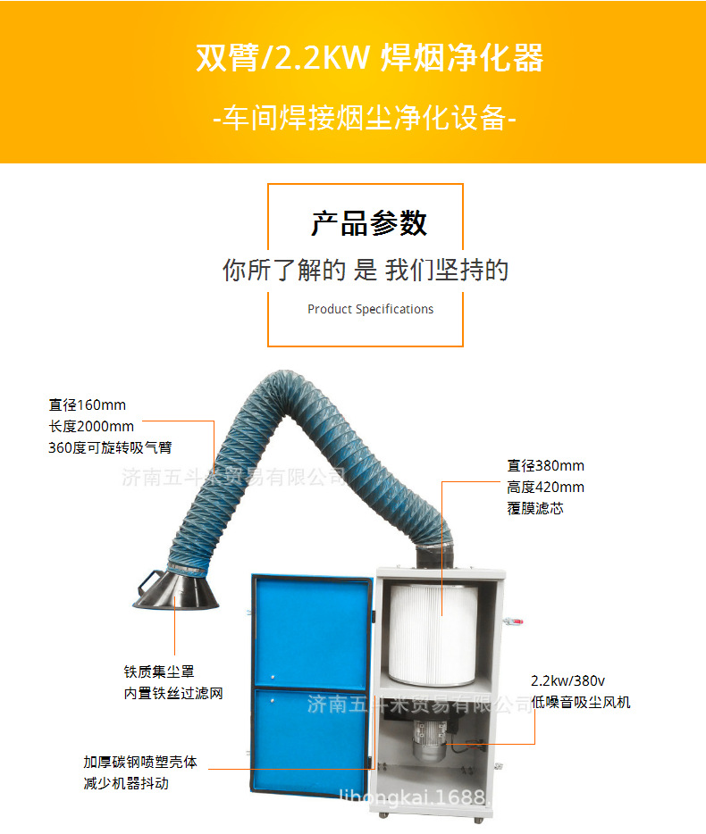 移动式焊接烟尘净化器用于焊接、抛光、切割、打磨等工序中产生烟尘和粉尘的工位