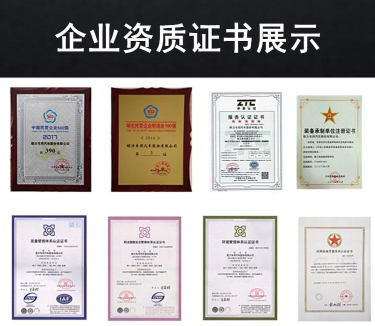 货箱边二底三,底3mm厚防滑板,方筒无焊缝LED灯架,LED爆闪灯,可形成左右指向超大箭头,定制不锈钢合页,美观耐用,选装LED显示屏,配国际品牌70K防撞缓冲垫,一键控制升降。