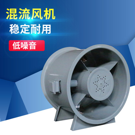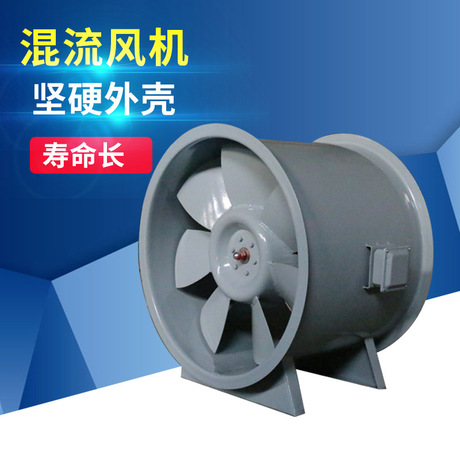 混流式风机结合了轴流式和离心式风机的特征,外形看起来更像传统的轴流式风机。机壳可具有敞开的入口,但更常见的情况是,它具有直角弯曲形状,使电机可以放在管道外部。排泄壳缓慢膨胀,以放慢空气或气体流的速度,并将动能转换为有用的静态压力。