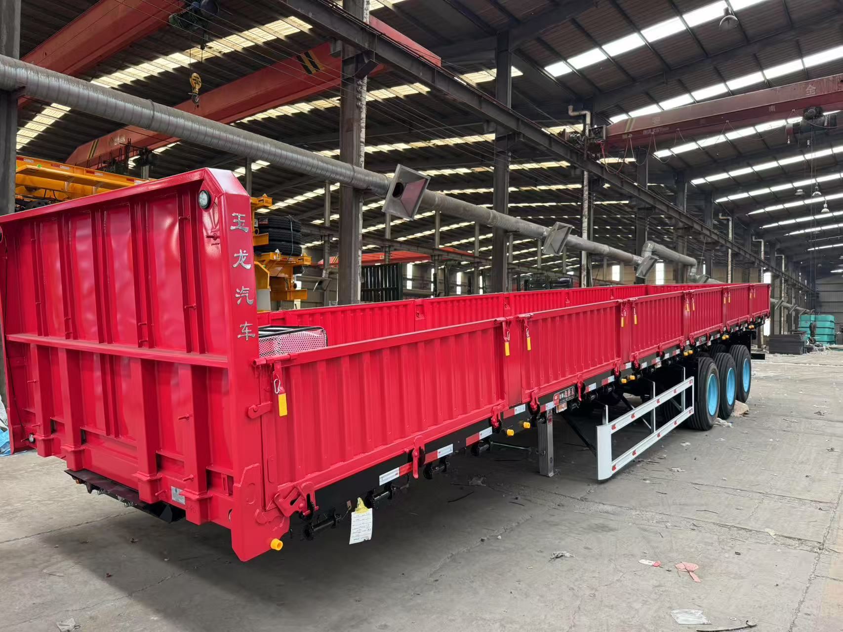 此外,玉龙偏翻半挂车在制造工艺上也精益求精。采用高强度的钢材制作车架和车厢,确保车辆具有足够的强度和耐用性,能够承受长期的重载运输。先进的焊接工艺和表面处理技术,使车辆不仅外观美观,而且具有良好的防锈蚀性能,延长了车辆的使用寿命。在车辆的维护保养方面,玉龙偏翻半挂车也设计得十分贴心,各个部件易于拆卸和更换,方便日常的检查和维修工作。