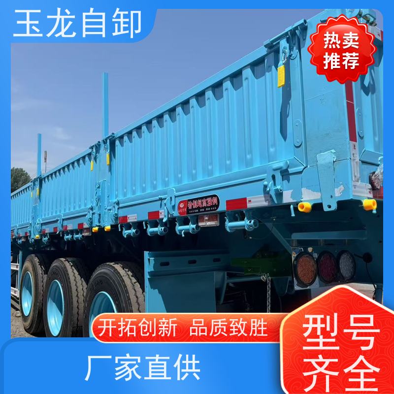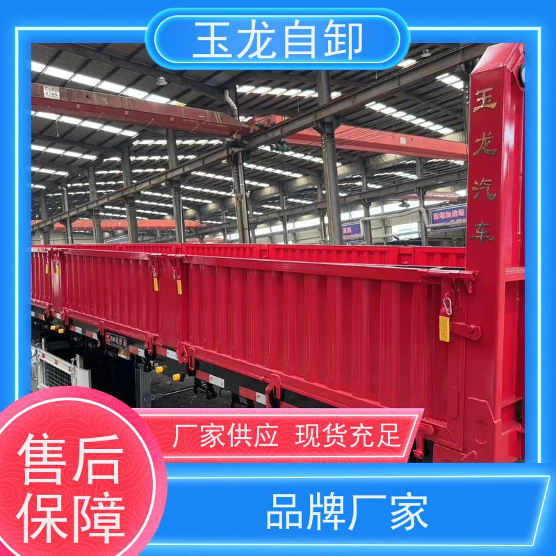 玉龙偏翻半挂车具备普货和砂石两用的功能,这使其具有更广泛的适用性。对于普货运输来说,它的车厢设计合理,空间宽敞,能够满足不同尺寸和重量的货物装载需求。车厢内部平整光滑,便于货物的装卸和固定,有效保护货物在运输过程中不受损坏。而在砂石运输方面,其独特的侧翻设计发挥了重要作用。通过侧翻功能,能够快速、高效地卸载砂石,大大提高了装卸效率,节省了时间和人力成本。侧翻装置操作简单方便,只需通过控制按钮即可轻松完成侧翻动作,且侧翻角度可根据实际需求进行调整,确保砂石能够准确地卸载到指定位置。