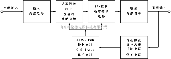 三、工作原理DZY-48/50C开关整流器主要由输入滤波电路、缓启动电路、PFC有源功率因数校正电路,PWM高频开关DC-DC变换电路、输出整流滤波电路等部分组成。图3-1是DZY-48/50C开关整流器基本工作原理框图。