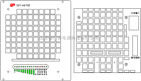 DZY-48/50C开关整流器具有交流输入过压、交流输入欠压、直流输出过压、直流输出限流与短路保护和整机过温等保护功能。