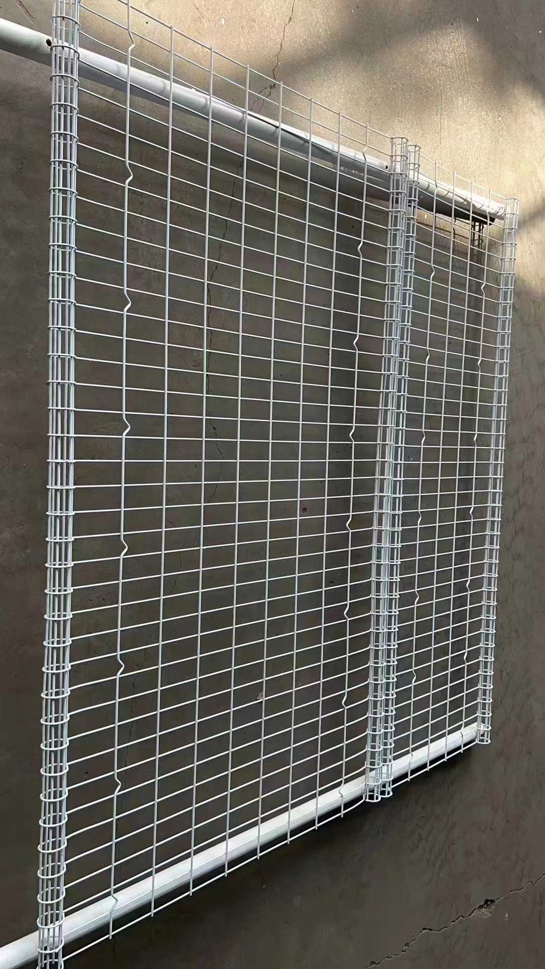 双圈护栏网结构:用低碳钢丝编织焊接成的金属网冲压折弯卷成圆筒状后,用连接附件与钢管支柱相连固定。