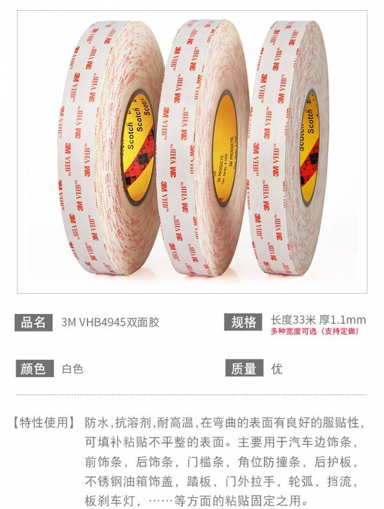 3M双面胶 防水代替焊缝胶带 汽车泡棉无痕 4945VHB双面胶带