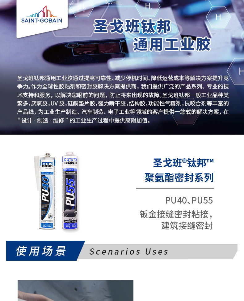广泛用于OEM整车厂,既有适用于小汽车,大车巴士的风挡玻璃的产品,也有适用工程车辆的玻璃胶产品