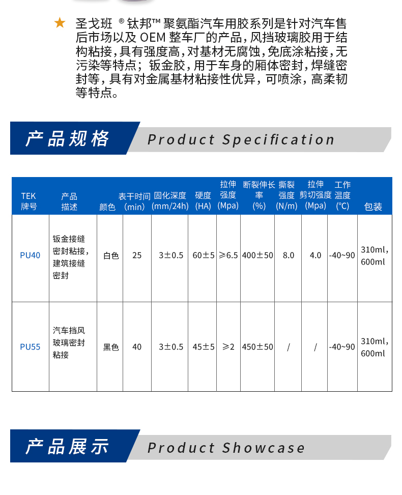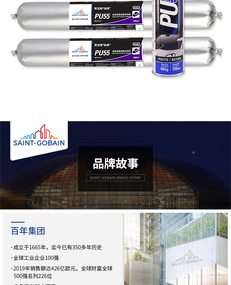 圣戈班钛邦PU55聚氨酯高强度无污染汽车玻璃专用固定防水胶