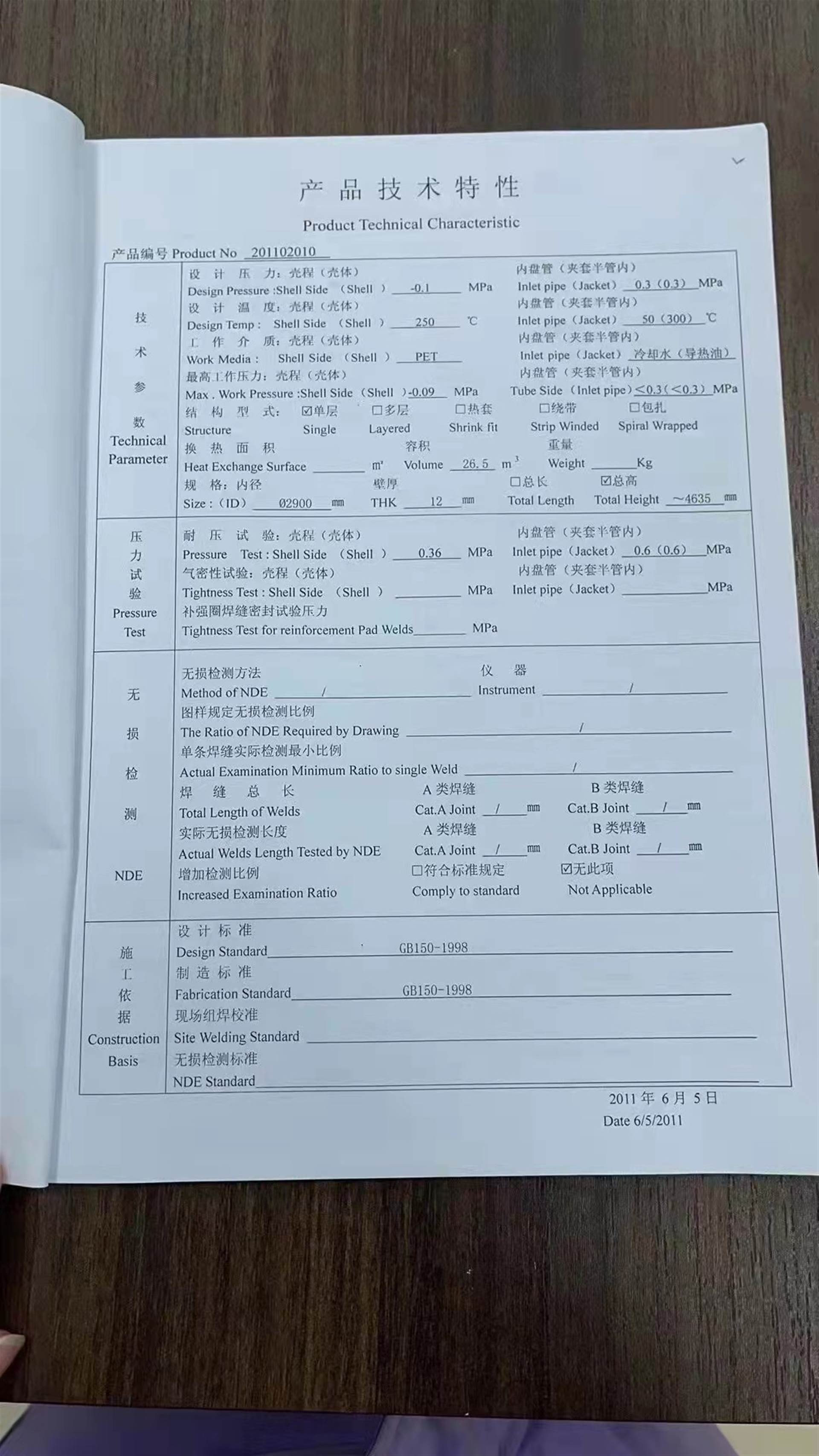 夹套按工艺需要采用不锈钢(SUS304)或碳钢(Q235-B)等。