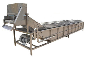 气泡清洗机是大枣,蔬菜,水产生产线中的重要产品,主要用于大枣,蔬菜,水产的清洗。气泡清洗机的原理主要是利用箱体前部分设备箱体中注适量的水,经过加热管将水温加热,原料在经过箱体时,会与气泡机和水的结合作用下做翻滚状态,并随网带不断向前推进,在出水面时,设有喷淋头,高压冲洗。