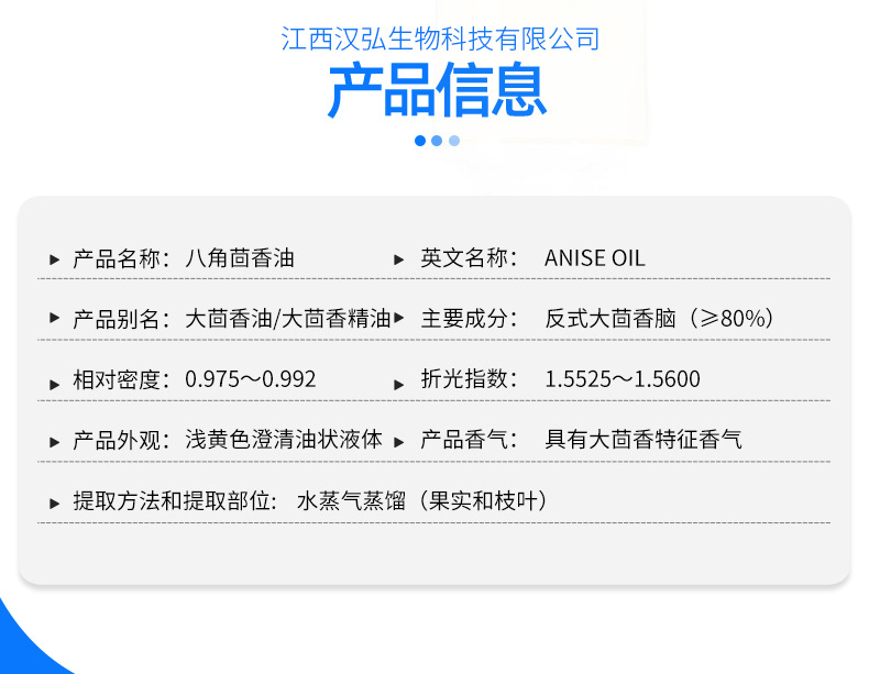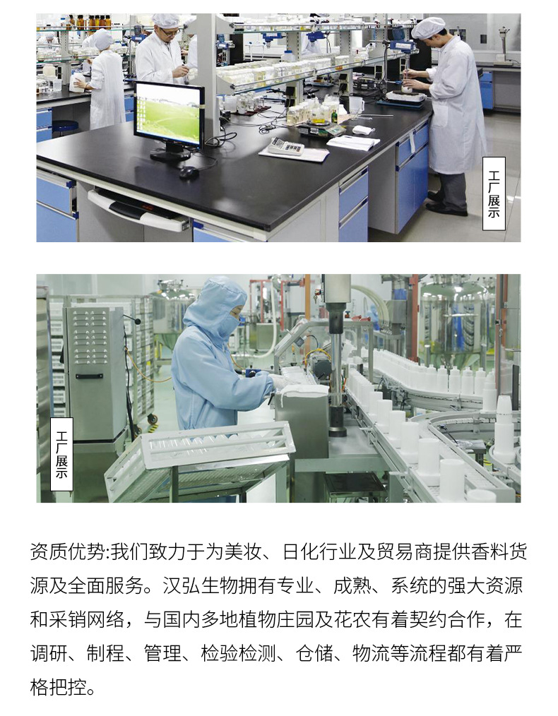 江西汉弘生物科技有限公司位于素有“江南望郡”之称的江西省吉安市,是集国内、国外贸易为一体的综合性公司,经销产品包含植物性天然香料、合成香料、医药中间体等百余品种。公司拥有完善的生产基地,高科技仪器设备,雄厚的技术力量和有经验的科研队伍,由长达二十余年从事香精香料技术开发的调香科研人员及管理人员组成,并和国内外多家先进的香精香料公司有着长久稳固的合作。汉弘生物一贯坚持“质量为先,信誉为重,管理为本,服务为诚”的经营理念,服务于广大企业客户朋友,发扬“团结、奋进、求实、创新”的精神,在国内外建立了完善的采销网络,为市场源源不断地输出高品质产品。欢迎各界朋友莅临参观、指导和业务洽谈。