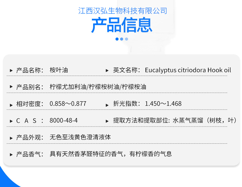 江西汉弘生物科技有限公司位于素有“江南望郡”之称的江西省吉安市,是集国内、国外贸易为一体的综合性公司,经销产品包含植物性天然香料、合成香料、医药中间体等百余品种。公司拥有完善的生产基地,高科技仪器设备,雄厚的技术力量和有经验的科研队伍,由长达二十余年从事香精香料技术开发的调香科研人员及管理人员组成,并和国内外多家先进的香精香料公司有着长久稳固的合作。汉弘生物一贯坚持“质量为先,信誉为重,管理为本,服务为诚”的经营理念,服务于广大企业客户朋友,发扬“团结、奋进、求实、创新”的精神,在国内外建立了完善的采销网络,为市场源源不断地输出高品质产品。欢迎各界朋友莅临参观、指导和业务洽谈。
