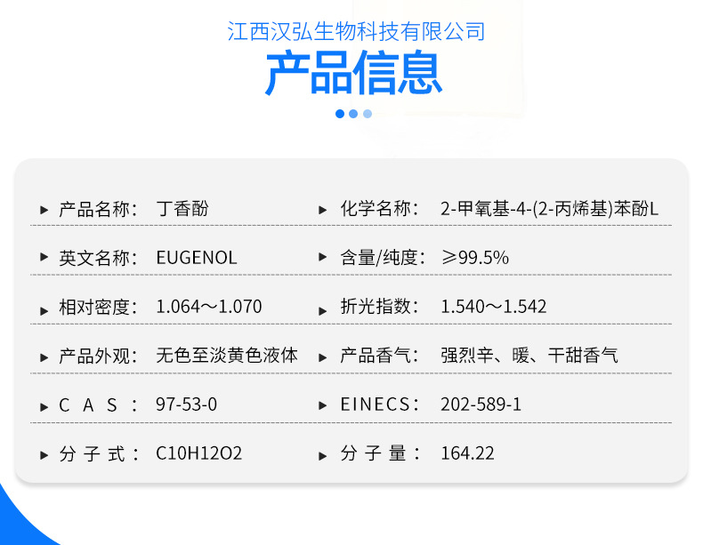 江西汉弘生物科技有限公司位于素有“江南望郡”之称的江西省吉安市,是集国内、国外贸易为一体的综合性公司,经销产品包含植物性天然香料、合成香料、医药中间体等百余品种。公司拥有完善的生产基地,高科技仪器设备,雄厚的技术力量和有经验的科研队伍,由长达二十余年从事香精香料技术开发的调香科研人员及管理人员组成,并和国内外多家先进的香精香料公司有着长久稳固的合作。汉弘生物一贯坚持“质量为先,信誉为重,管理为本,服务为诚”的经营理念,服务于广大企业客户朋友,发扬“团结、奋进、求实、创新”的精神,在国内外建立了完善的采销网络,为市场源源不断地输出高品质产品。欢迎各界朋友莅临参观、指导和业务洽谈。