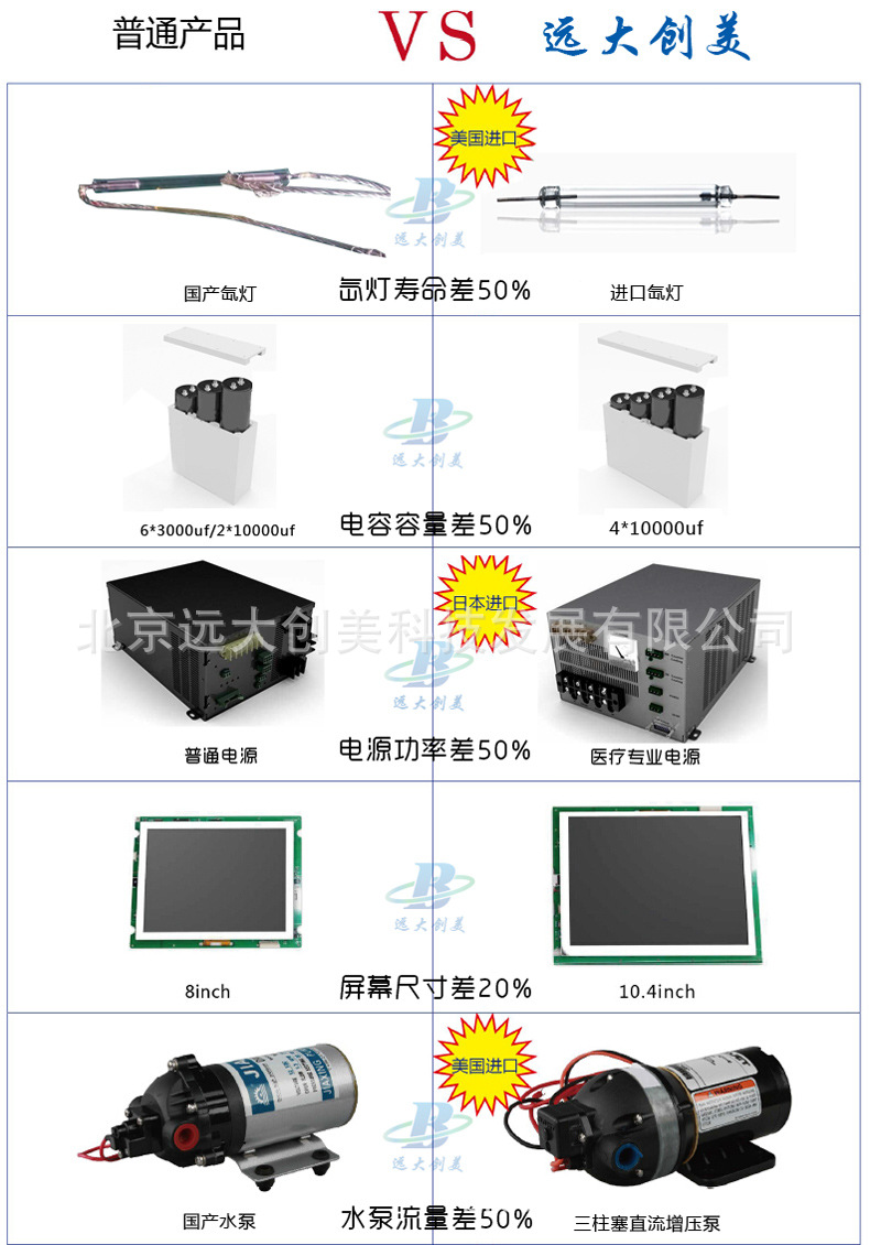 市面普通OPT与北京远大创美真OPT完美脉冲光治疗仪对比