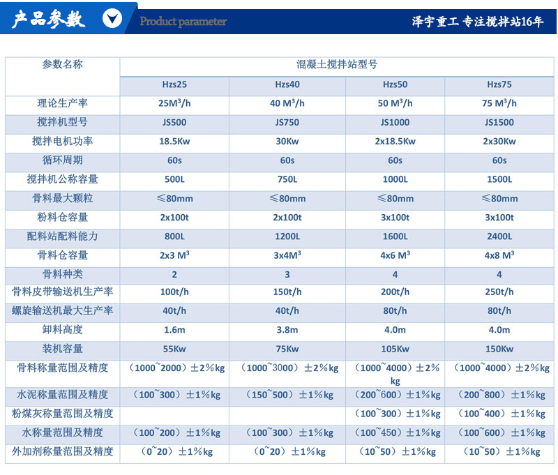 泽宇重工hzs50混凝土搅拌站参考技术参数