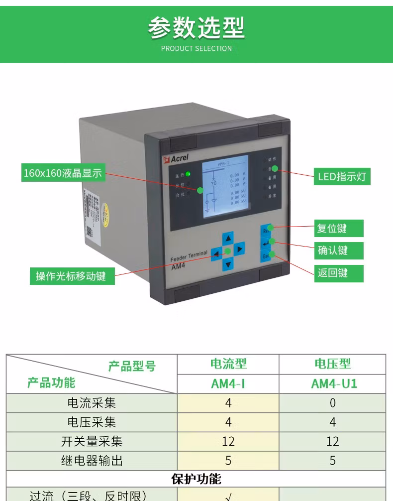 AM系列微机保护测控装置集保护、测量、控制于一体,适用于35kV及以下电压等级的用户终端变电站(所),可实现用户变电站的保护和测控。