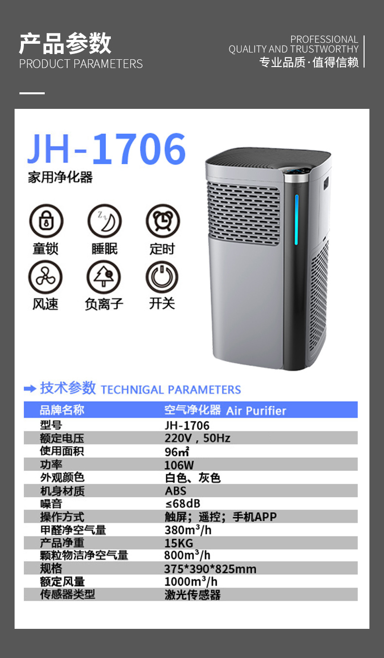 负离子功能(释放出负离子:1000万PCS/CM3) PM2.5数值显示