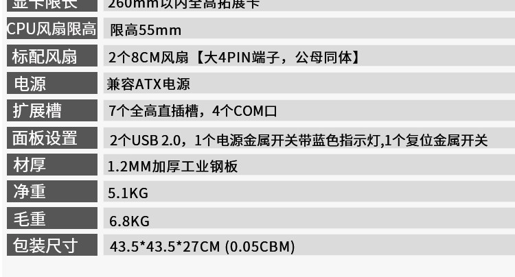 兼容主板类型: ATX标准型