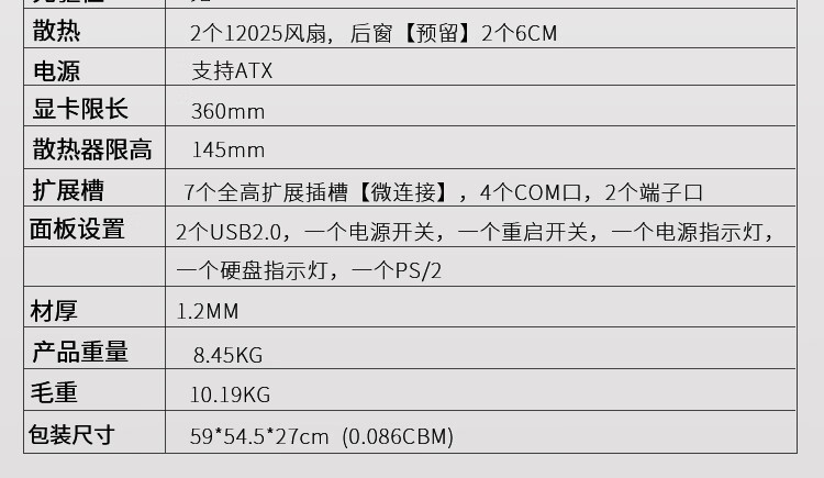 支持主板:ATX(标准型),M-ATX(紧凑型),MINI-ITX(迷你型)