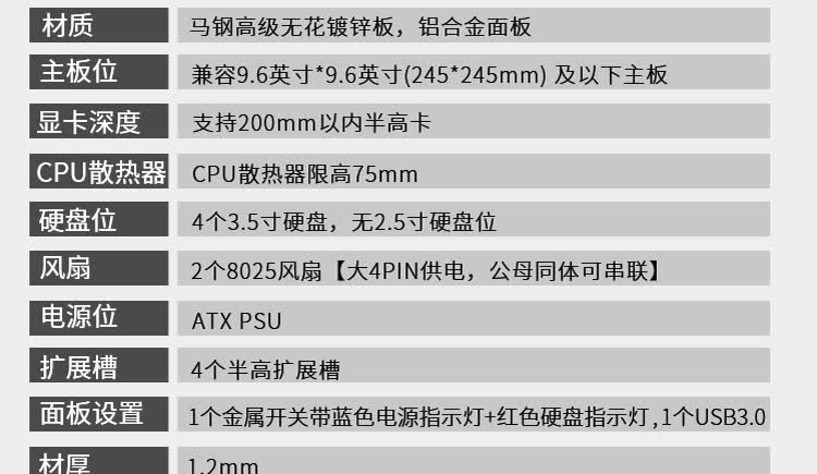 支持主板:M-ATX(紧凑型),MINI-ITX(迷你型)