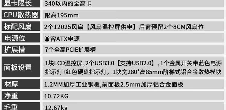 支持主板:E-ATX(加强型),ATX(标准型),M-ATX(紧凑型),MINI-ITX(迷你型)