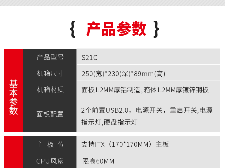 支持主板:MINI-ITX(迷你型)