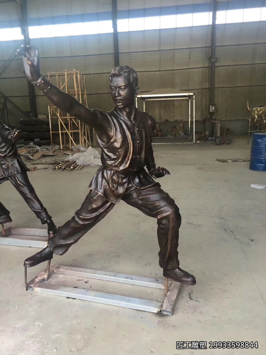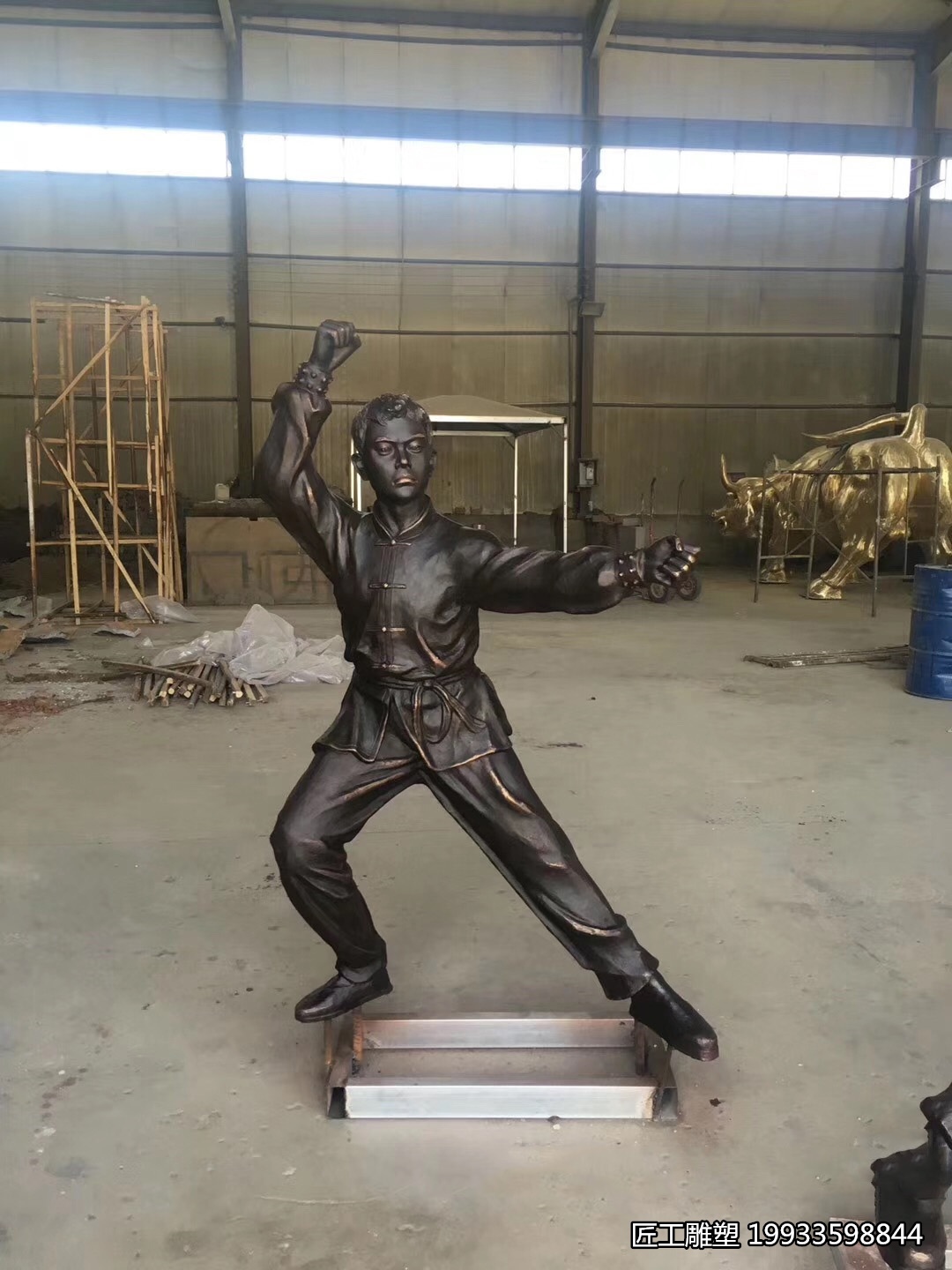 玻璃钢仿铜人物练武造型装饰雕塑的艺术价值,体现在其独特的表现形式和深刻的文化内涵上。练武人物作为雕塑的主题,往往选取中国古代武术中的经典动作或传说人物,如少林武僧、太极拳大师等,
