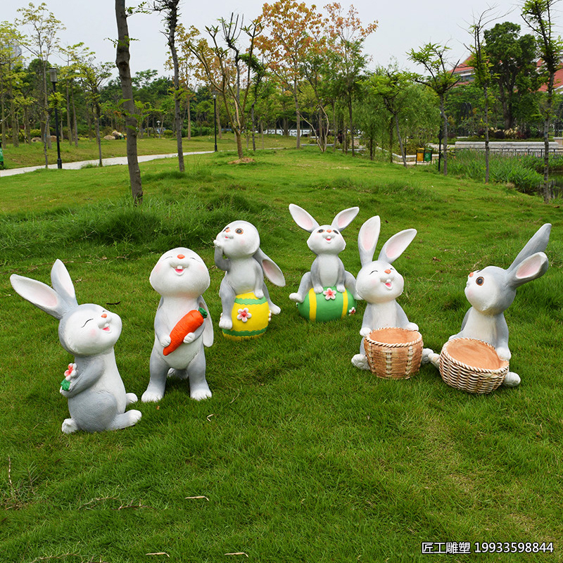 玻璃钢卡通动物兔子造型群体雕塑 |