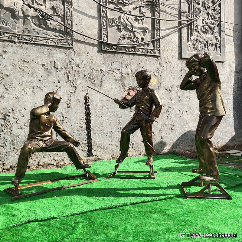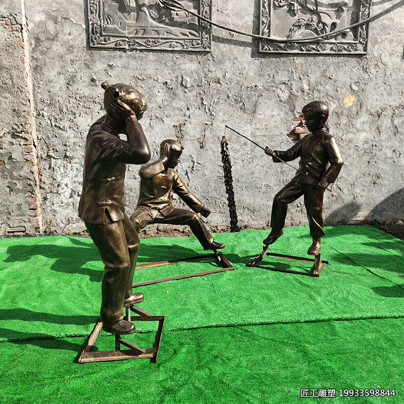 玻璃钢仿铜小孩放炮人物雕塑,正是以这一充满生活气息的场景为创作灵感,通过艺术家的精心设计和雕刻,将这一瞬间定格为永恒。雕塑中的小孩形象,通常被刻画得栩栩如生、活泼可爱。他们或蹲或站,脸上洋溢着天真烂漫的笑容,手中紧握着,仿佛下一刻就要点燃。