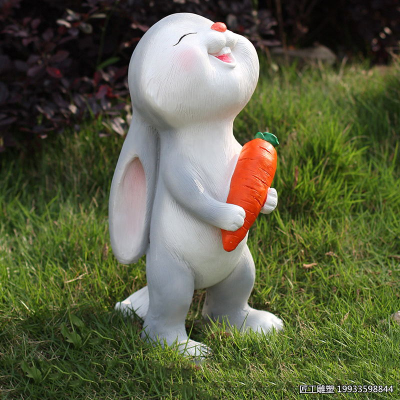 随着材料科学和数字技术的进步,玻璃钢小灰兔雕塑将迎来更多创新可能。现代玻璃钢雕塑创作者巧妙融合这些文化基因,通过拟人化设计使小灰兔或捧胡萝卜作揖,或怀抱怀表演绎《爱丽丝梦游仙境》的经典场景。