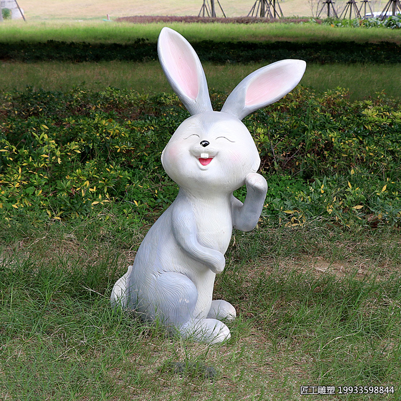维护保养是延长玻璃钢小灰兔雕塑寿命的关键。日常清洁应使用中性洗涤剂配合软布擦拭,避免钢丝球刮伤表面胶衣层;每两年需检查内部钢骨架的锈蚀情况,必要时进行防腐处理;