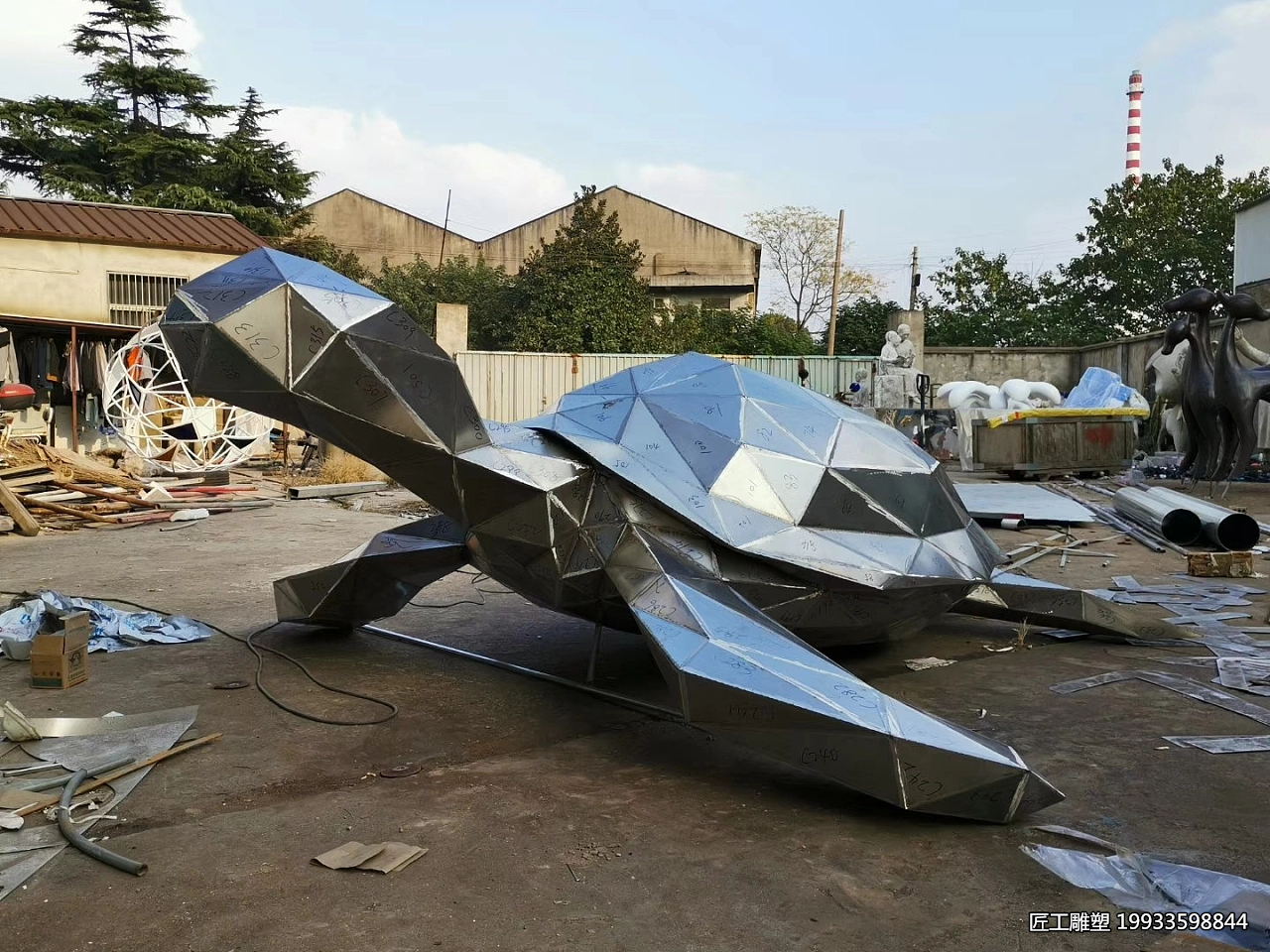 不锈钢几何切面动物海gui雕塑的设计灵感往往源自于自然界的海gui形象,但绝非简单的模仿或复制。艺术家们通过对海gui形态的抽象化处理,运用几何学的原理,将原本圆润流畅的生物形态转化为棱角分明、线条硬朗的几何切面形态。