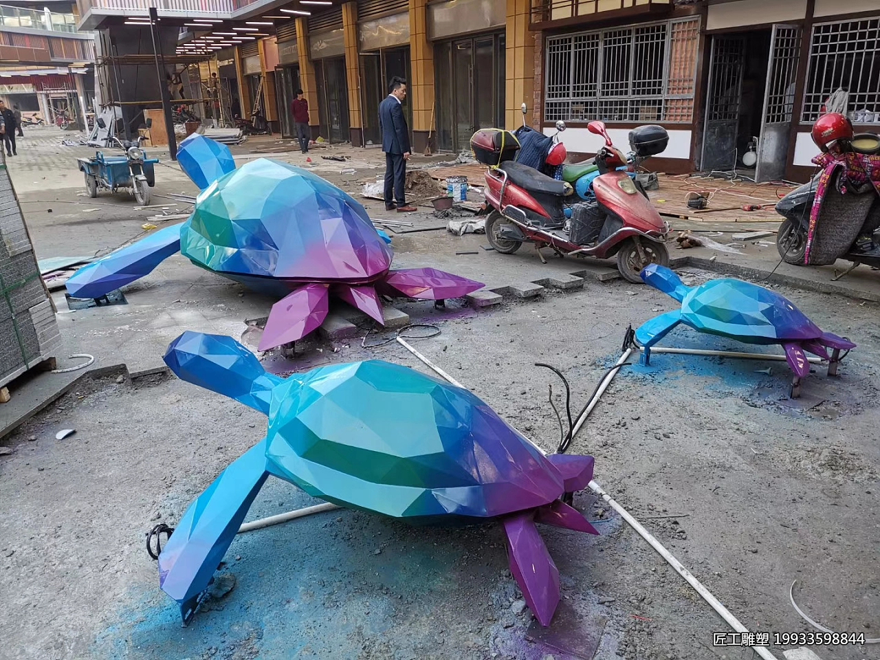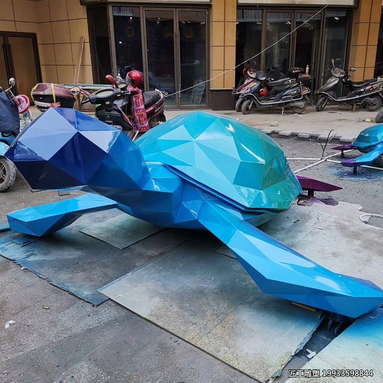 这种设计理念的革新,不仅赋予了海gui雕塑全新的视觉冲击力,更让作品在保留自然之美的同时,融入了现代艺术的气息,实现了自然与人工、传统与现代的完美融合。不锈钢几何切面动物海gui雕塑的艺术价值,不仅体现在其精湛的制作工艺上,更在于其深刻的象征意义和艺术表达。