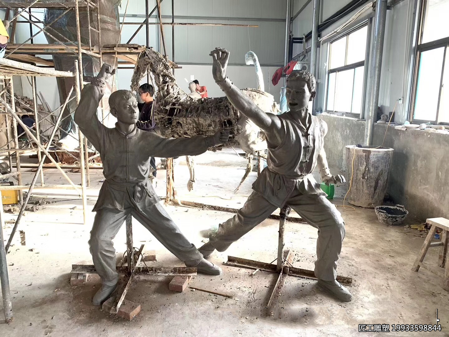 玻璃钢仿铜人物练武造型景观雕塑 |