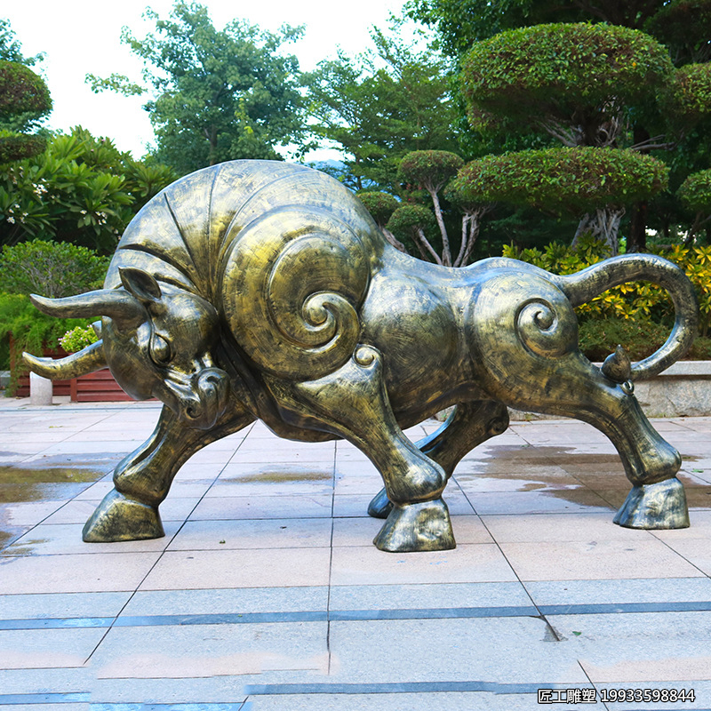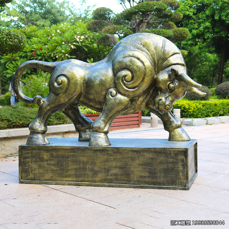 它打破了传统艺术的具象表现方式,以点、线、面、色彩等基本元素为语言,通过自由组合与变形,传达艺术家的主观情感与意念。在玻璃钢仿真抽象铜牛造型动物雕塑中,抽象手法的运用,使得原本具象的铜牛形象被赋予了新的生命与意义。