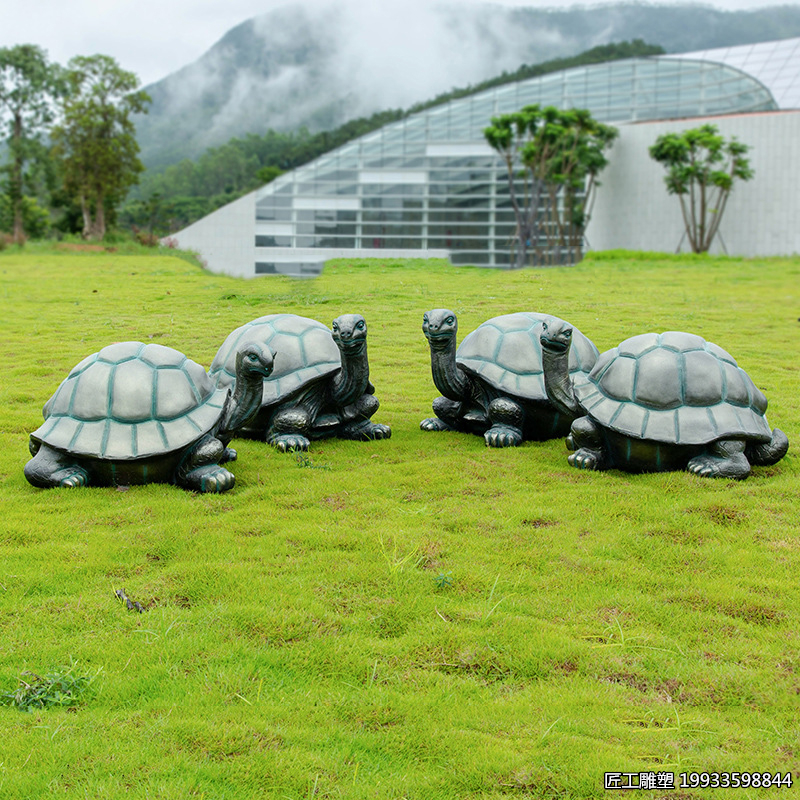 这些丰富的文化内涵使得玻璃钢仿铜乌龟雕塑在跨文化传播和交流中,也能够展现出独特的魅力和价值。在仿铜工艺处理方面,需要选用高质量的铜色涂料和做旧材料,以确保雕塑表面的色泽和质感能够持久保持。