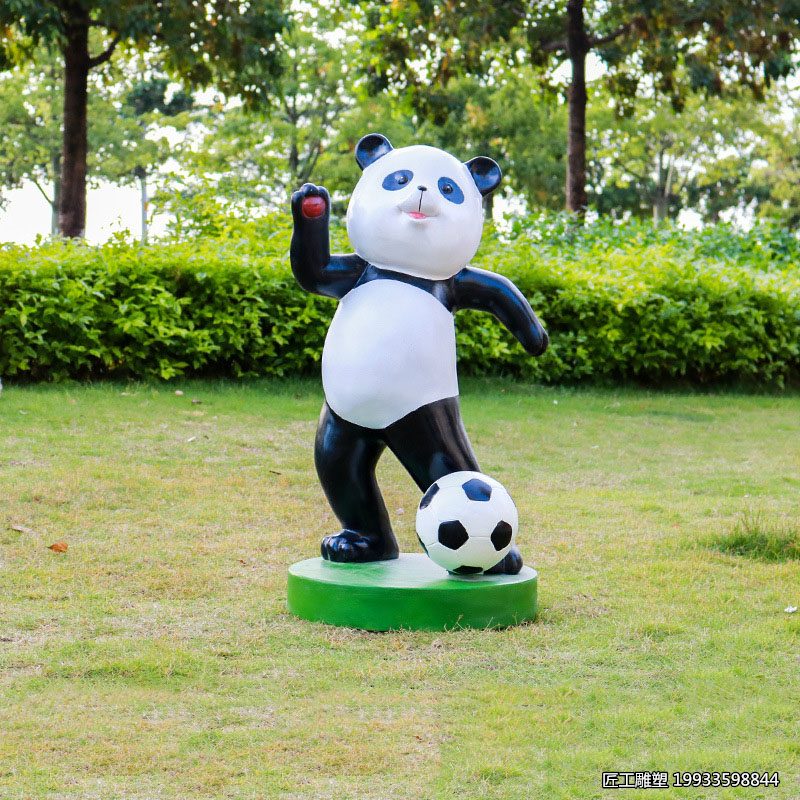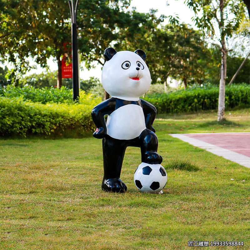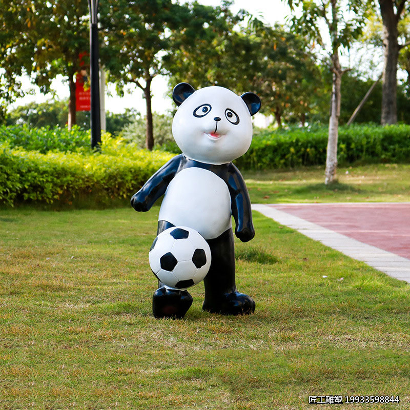 玻璃钢踢足球造型熊猫动物装饰雕塑 |