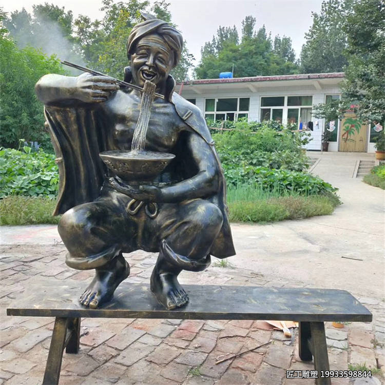 雕塑中的人物形象生动,面部表情细腻入微,仿佛能透过静止的姿态,传达出吃面时的满足与愉悦。那双筷子轻轻挑起面条的动作,既是对生活细节的捕捉,也是对“民以食为天”这一朴素真理的艺术诠释。