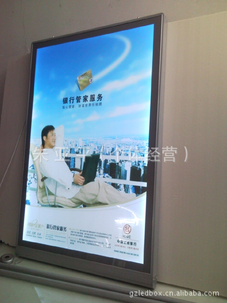 工商银行2011年新VI标准灯箱产品已经发布,各地区银行营业厅的形象改造及相关的招标工作已经全面启动,我公司根据工商银行新版的VI要求,已经开发出双面磁吸圆角开启式海报灯箱