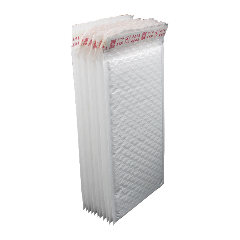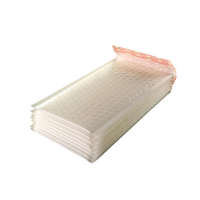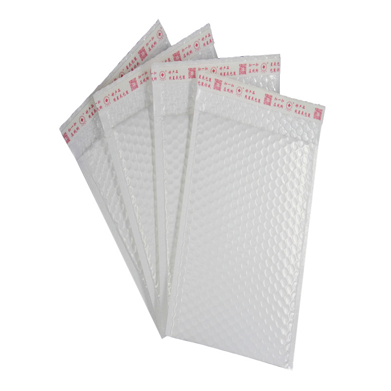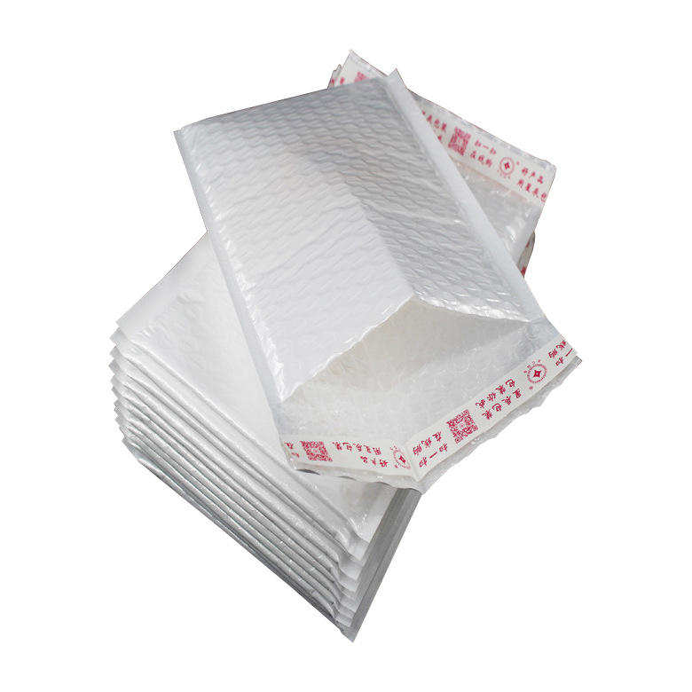 珠光膜气泡信封快递袋:外层珠光膜、内层气泡膜、气垫膜,二者复合而成。该产品是气泡制袋的完美体现。外层利用奶白共挤膜防潮、防腐蚀的特点,内层利用气泡的缓冲、减震、隔热的特点。奶白共挤膜袋内层通常为不透明色确保所装物品的机密性,具有防潮、耐穿刺、抗撕裂等功能,外层为干净清洁的奶白色,便于书写印刷宣传。其信封口与自粘性破坏胶的设计能让客户快速简单的封口,并防止他人篡改内装物品。此品多用于服装、文件、快递等包装。