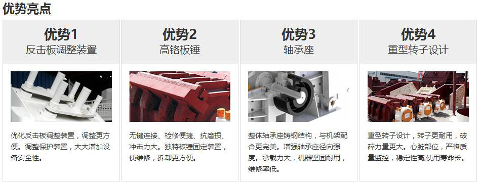 反击式破碎机能处理边长100-500毫米以下物料,具抗压强高可达350兆帕,具有破碎比大,破碎后物料呈立方体颗粒等优点。广泛应用于建材、矿石破碎、铁路、高速公路、能源,交通、能源、水泥、矿山、化工等行业中用来中细碎物料。其排料粒度大小可以调节,破碎规格多样化。