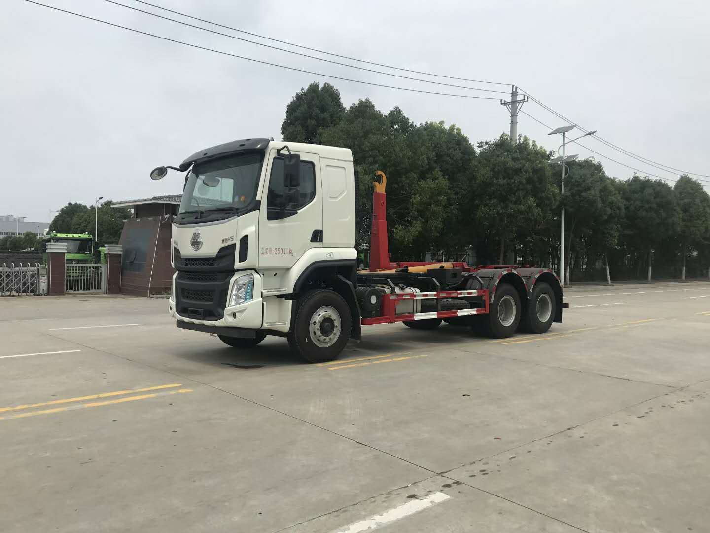其他:全浮驾驶室悬置,轮胎11.00R20,250L铝合金油箱,中控锁、空调、车载终端、多态开关、超速报警功能、ABS、车下起动停机功能、PTO开关。