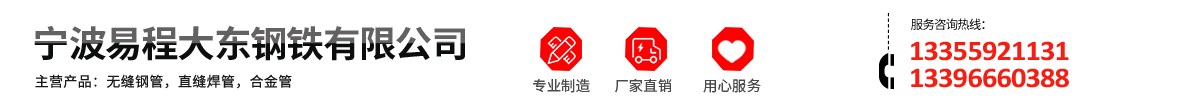 宁波易程大东钢铁有限公司*经营各种规格的钢管、精密管、无缝管、锅炉管、合金管、流体管、结构管等,各种无缝钢管型号齐全。适用于工程、煤矿、纺织、电力、锅炉、机械、*等各个领域。公司以良好的信誉、*的产品、雄厚的实力、低廉的价格享誉全国30多个省、市、自治区、直辖市及国外,产品深得用户依赖。