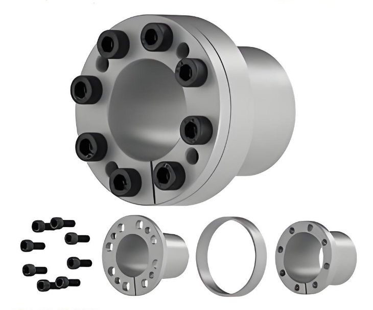 胀紧套是一种无键式联结结构的传动件产品,在轴向力的作用下,胀套的内外套内缩外涨使轴和毂紧密贴合而产生足够的摩擦力以传递扭矩,从而达到机构运转的目的。特点:联结的定心性能好;装配时无需加热;调整轴与毂的相应位置方便;没有应力集中;承载能力强;扭矩大;平稳性好;精度搞;不损坏配合表面。