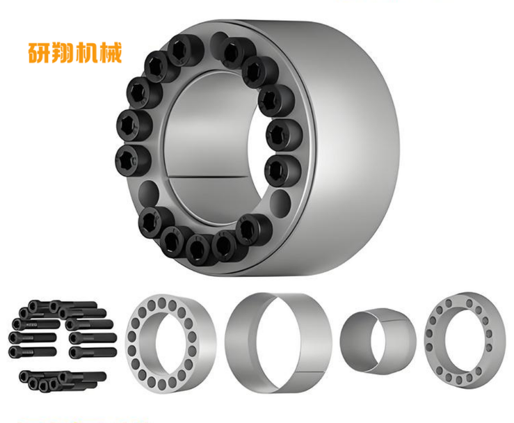 胀紧套是一种无键式联结结构的传动件产品,在轴向力的作用下,胀套的内外套内缩外涨使轴和毂紧密贴合而产生足够的摩擦力以传递扭矩,从而达到机构运转的目的。特点:联结的定心性能好;装配时无需加热;调整轴与毂的相应位置方便;没有应力集中;承载能力强;扭矩大;平稳性好;精度搞;不损坏配合表面。