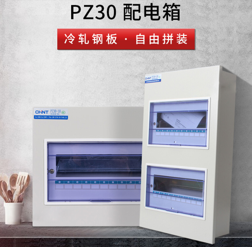 主要结构特点PZ30终端组合电器主要结构部件有透明罩、上盖、箱体、安装轨、轨道高低调节螺杆、导电排、护线罩和电器开关元件等。 内装电器开关元件全部采用宽度18mm模数的电器,安装于顶帽形轨道上,可根据需要任意组合,安装轨道高低可调节,特别对暗装式 更为方便。拆装迅速方便、开关元件手柄外露,带电及其它部分遮盖于上盖内部,打开门可方便地操作,使用安全可靠,箱体上下、左右及背后均设置进出线孔,便于接线。折叠编辑本段特点折叠技术成熟PZ30配电柜,原理简单,组要组成部分:各种开关元器件、壳体、透明门、上盖、零排、保护接地排、绝缘导线等。